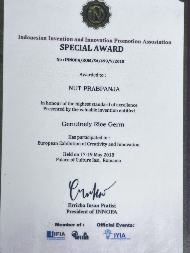 ผลิตภัณฑ์แปรูปจมูกข้าวเป็นการต่อยอดจากพืชเกษตรอินทรีย์ประเภทข้าวเพื่อเพิ่มมูลค่าและส่งเสริมกระจายรายได้สู่กลุ่มเกษตรกร โดยน้อมนำเอาศาสตร์พระราชาในปรัชญาของพระบาทสมเด็จเจ้าอยู่หัวรัชกาลที่ 9 มาใช้เป็นองค์ประกอบในการดำเนินธุรกิจ ผลิตภัณฑ์จมูกข้าวเมืองนครฯ ยังได้รับรางวัลนวัตกรรมระดับโลก ปี 2018 -2019 รวมทั้งหมด 9 รางวัล อาทิ รางวัลชนะเลิศเหรียญทองจากเวทีประกวดประเทศโรมาเนีย รางวัลพิเศษผลิตภัณฑ์ทรงคุณค่า จากประเทศ อินโดนีเซีย รางวัลอันทรงเกียรติจากสมาพันธ์นวัตกรรมยุโรป รางวัลประกาศเกียรติคุณนวัตกรรมดีเยี่ยม จากสมาคมโตรอนโต ประเทศแคนนาดา